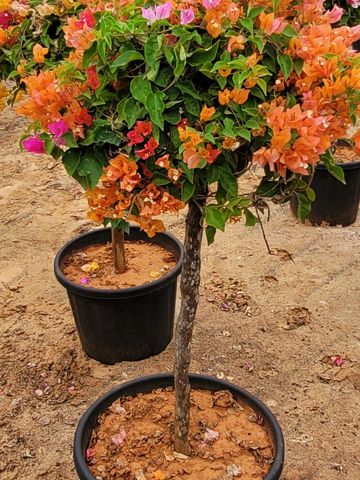 Bougainvillea (orange, pink, and white bracts)